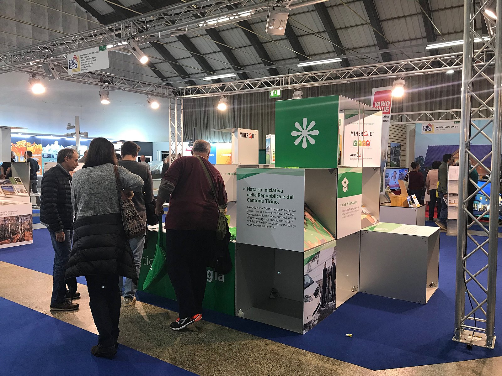 Nello spazio espositivo istituzionale, TicinoEnergia fa bella mostra di uno stand completamente nuovo in cui il visitatore viene accompagnato tra i nostri ambiti di competenza: consulenza, formazione, sistema edificio ed efficienza energetica a 360 gradi.