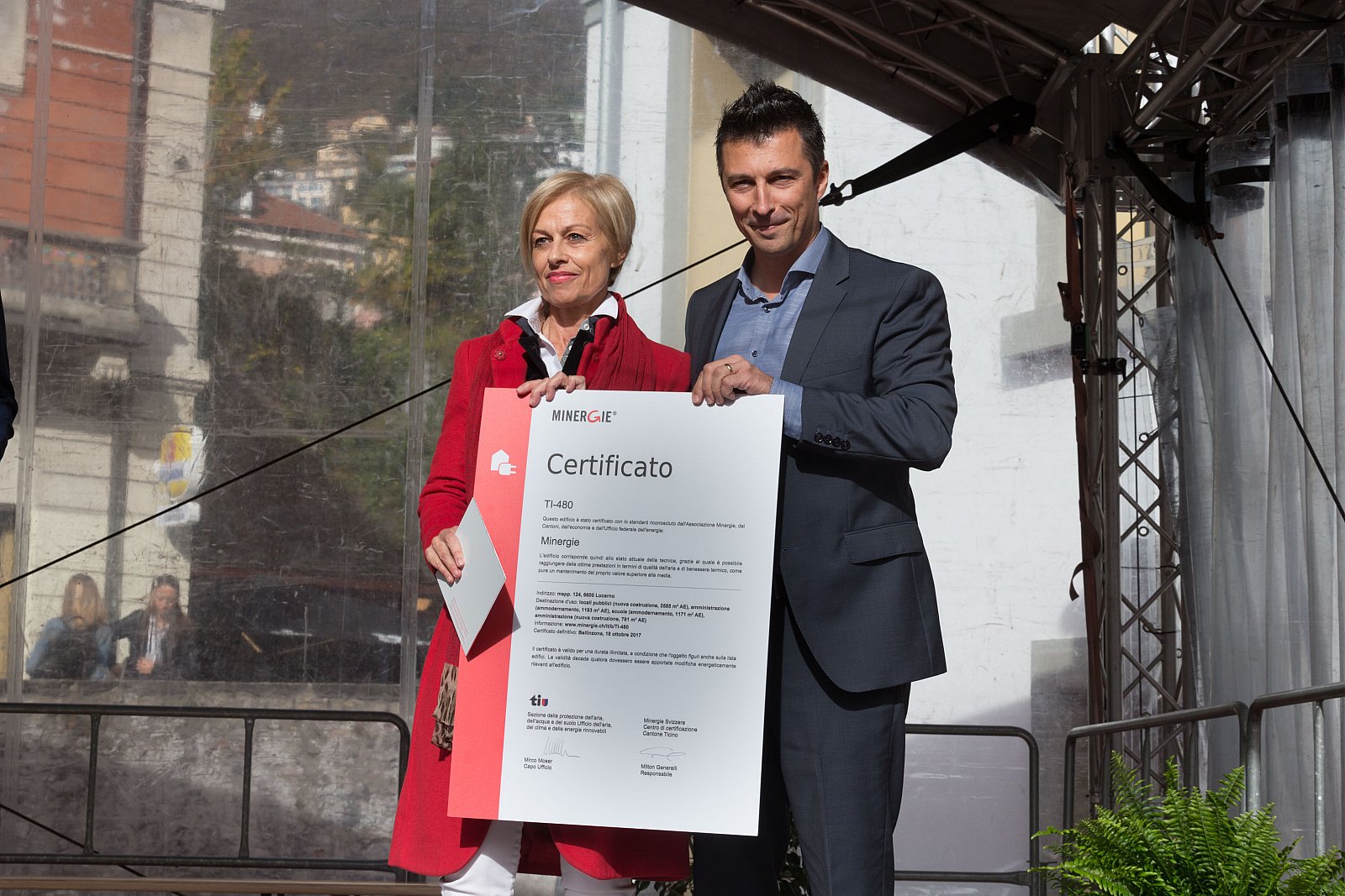 Durante i discorsi ufficiali, è stato consegnato il certificato Minergie e la rispettiva targhetta distintiva.