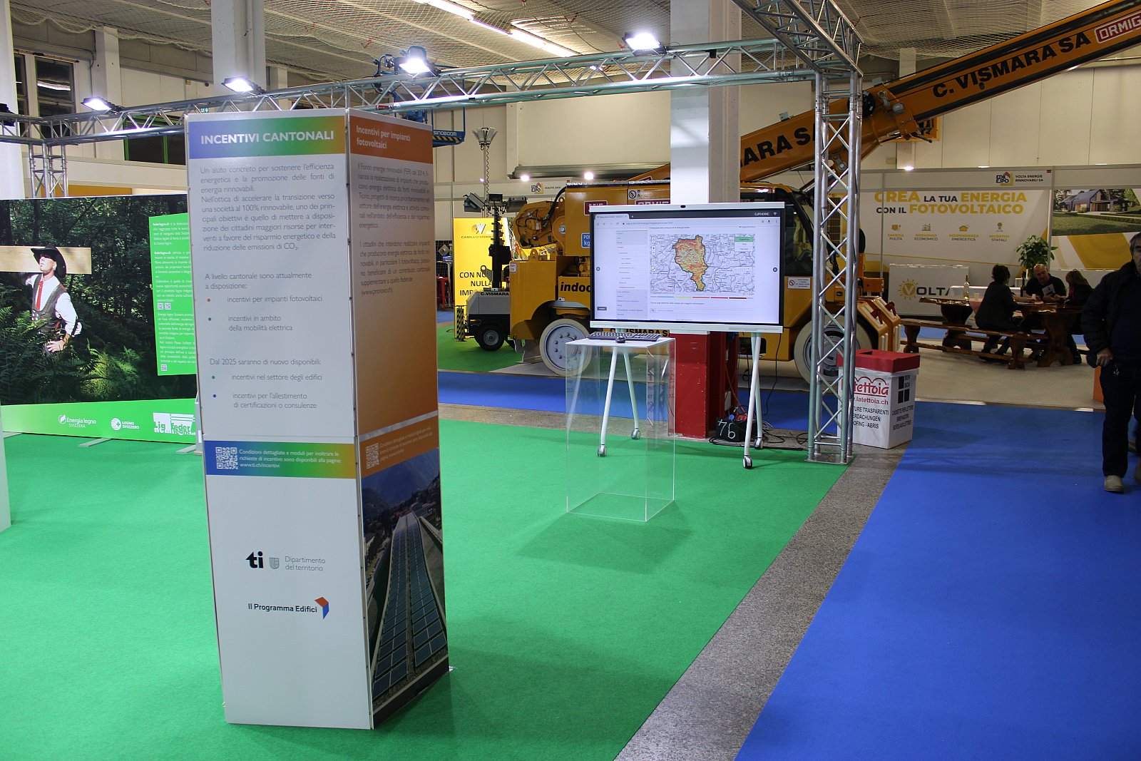 TicinoEnergia e il Dipartimento del territorio erano presenti alla fiera Edilespo che si è svolta dal 20 al 22 novembre insieme ai partner istituzionali CECE, Minergie, SNBS, APP, Swissolar, federlegno.ch ed Energia legno Svizzera. Il pubblico ha potuto confrontarsi con competenze diversificate inerenti all’edilizia e all’impiantistica: legno sostenibile, fotovoltaico, pompe di calore, certificazioni di qualità e molto altro ancora.