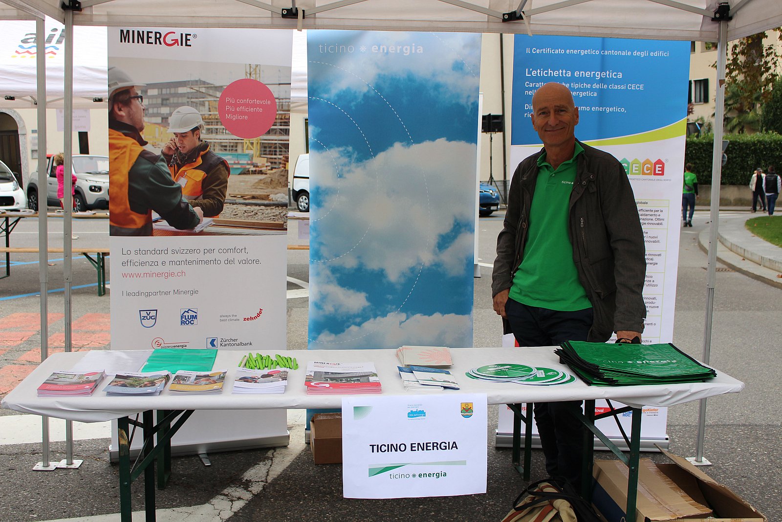 Sabato 30 settembre 2017 l’Associazione TicinoEnergia ha potuto contribuire all’informazione e la sensibilzzazione della popolazione locale. Lo stand informativo ha riscosso grande successo, con domande mirate e puntuali ai collaboratori. Anche i più piccoli hanno avuto modo di cimentarsi con i temi inerenti l’energia: il gioco dell’oca e l’Energoal hanno scatenato la curiosità e la voglia di imparare anche tra i giovanissimi.